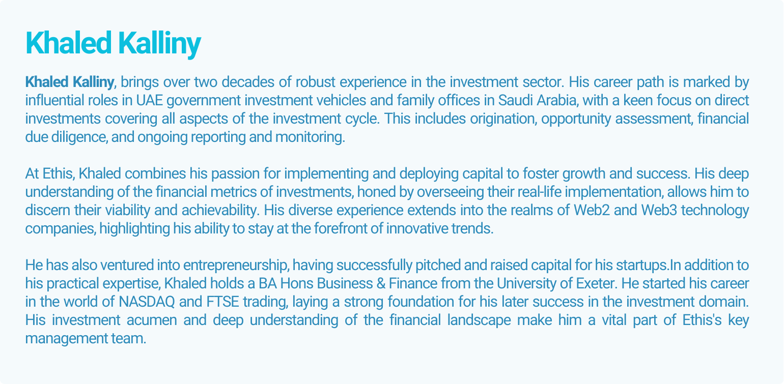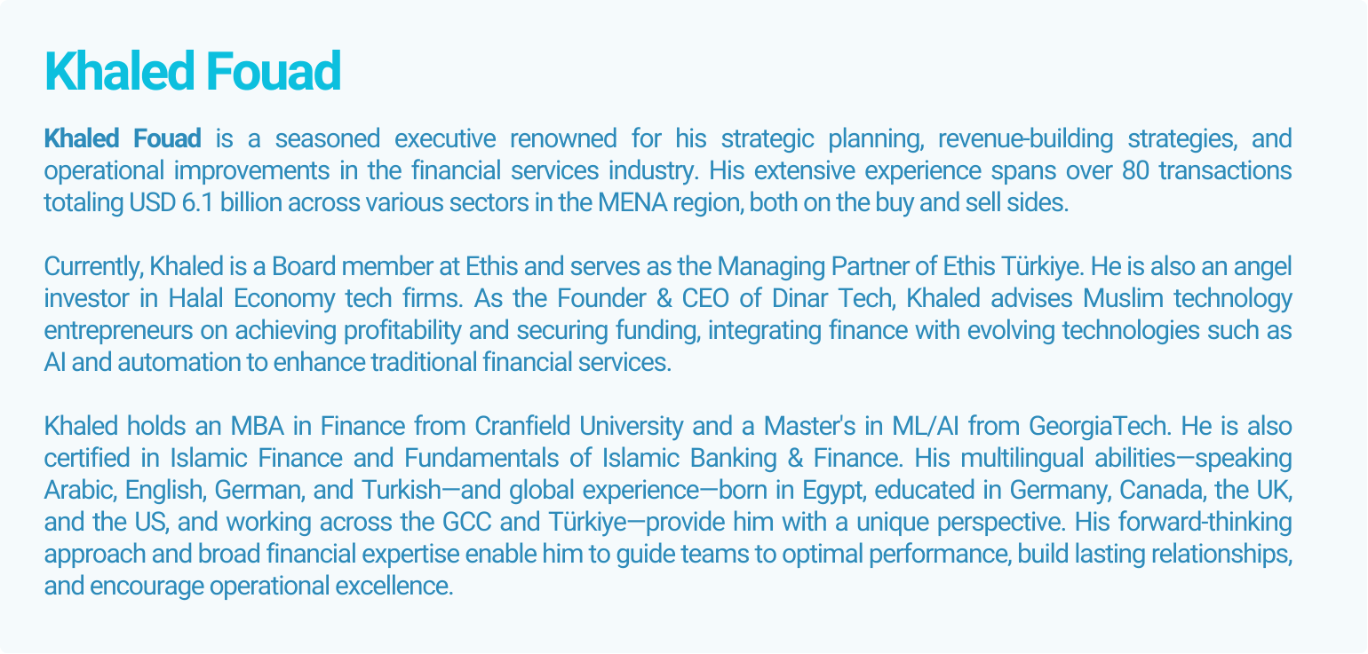 • Board member at Ethis, Managing Partner of Ethis Türkiye, and angel investor in Halal tech firms