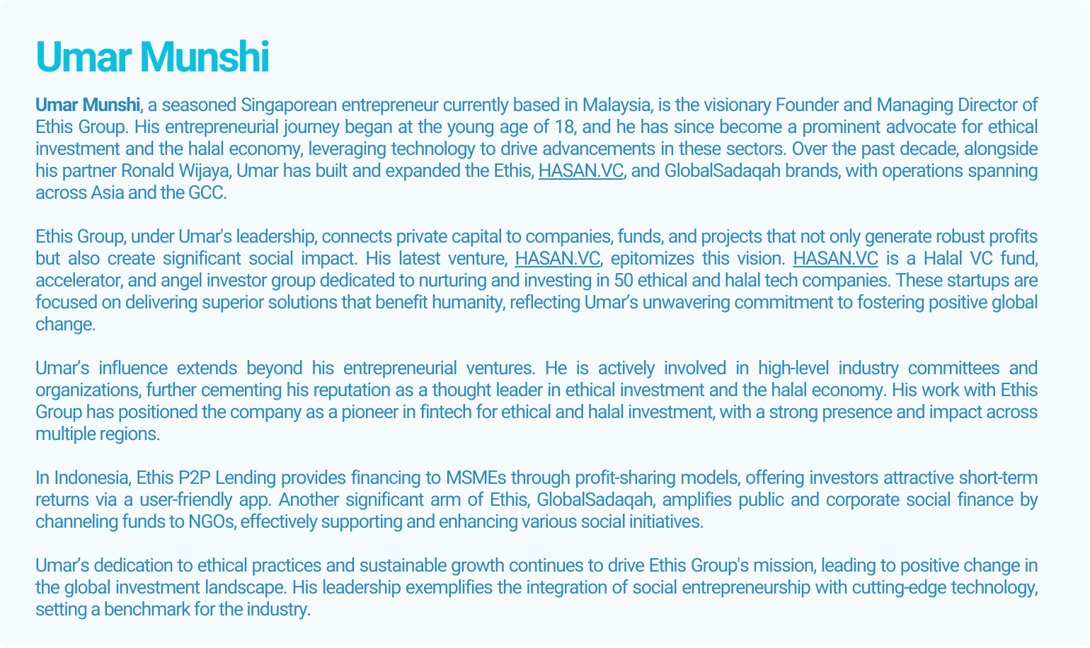 • Founded Ethis, an Islamic fintech Venture Builder – launched platforms that funded 1,000+ SMEs and startups